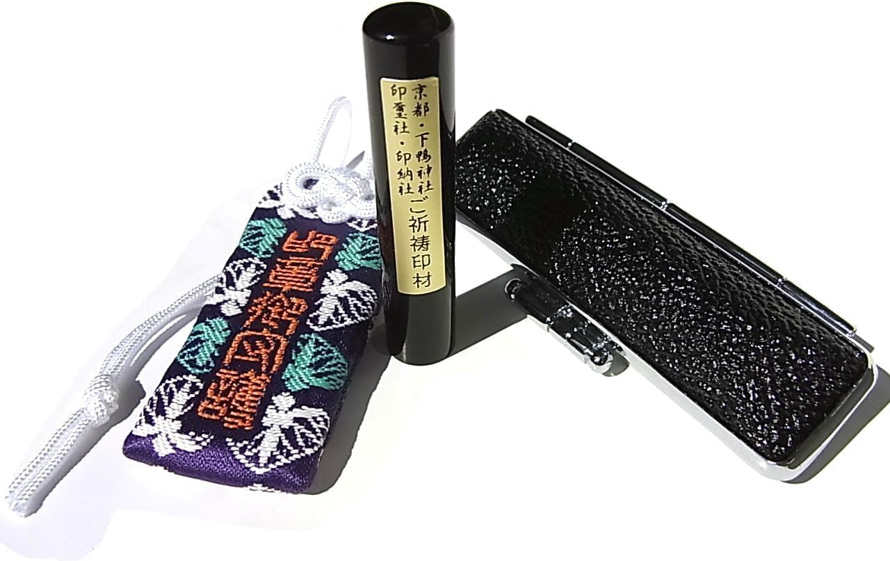 - 10.5mm×60mm印鑑、印鑑ケース、桐箱、印鑑彫刻証明書、印鑑保証書、正規御祈祷認定証・シール、下鴨神社御祈祷お守り、和包装、別彫証明シール、捺印マット、印鑑朱肉