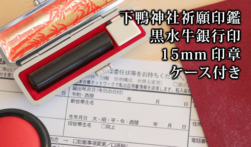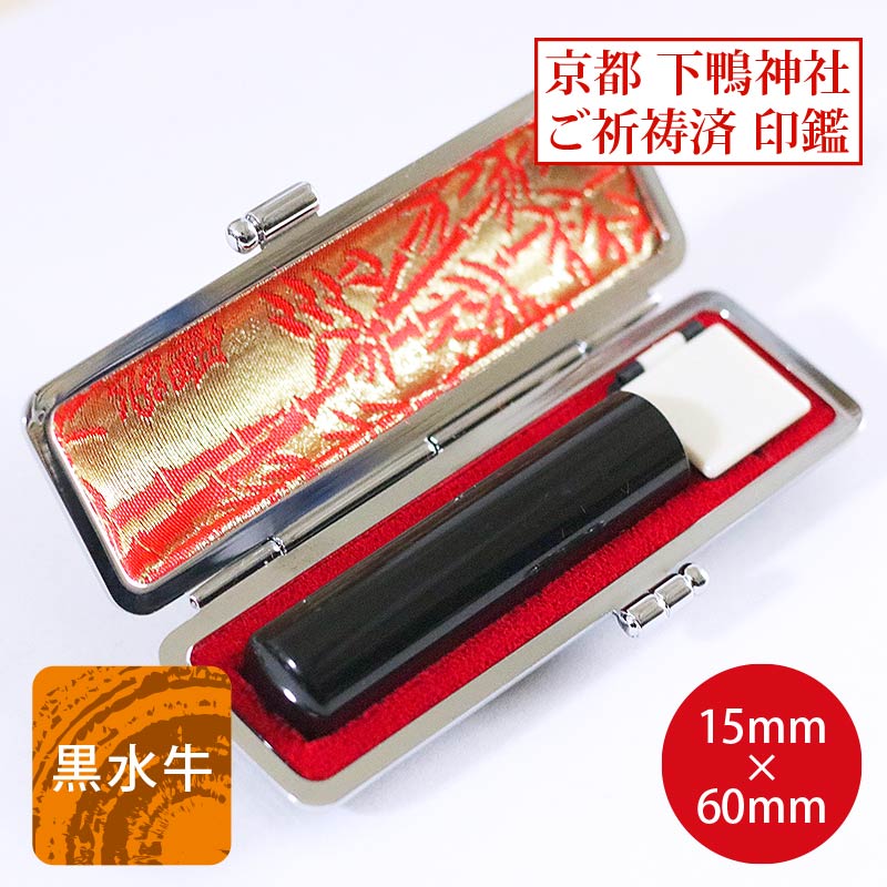 下鴨神社祈願印鑑 黒水牛銀行印15ミリケース付き